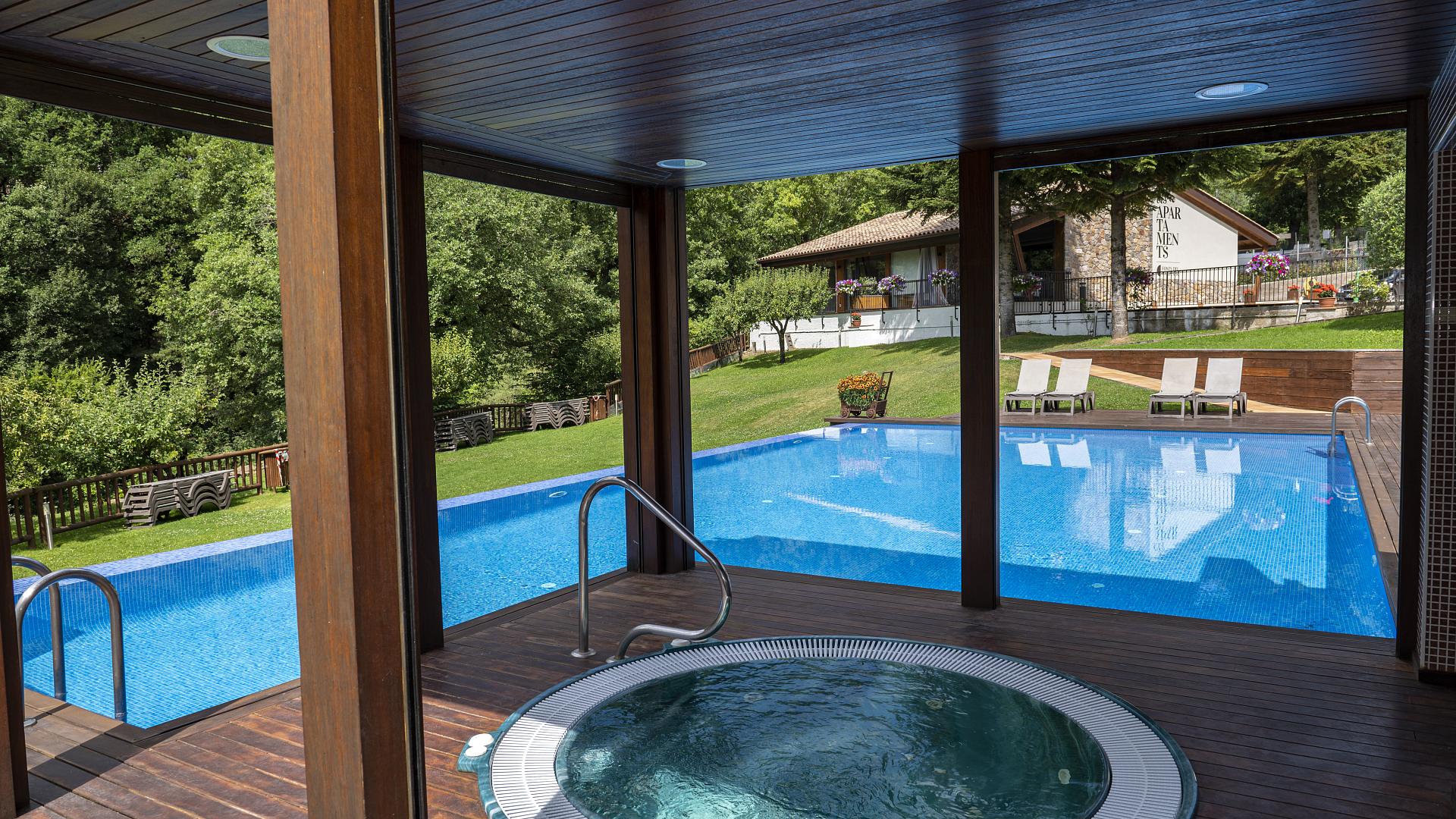 En Hotel Fonts del Cardener, te extendemos una cálida invitación a sumergirte en el lujo de nuestra piscina con jacuzzi.
